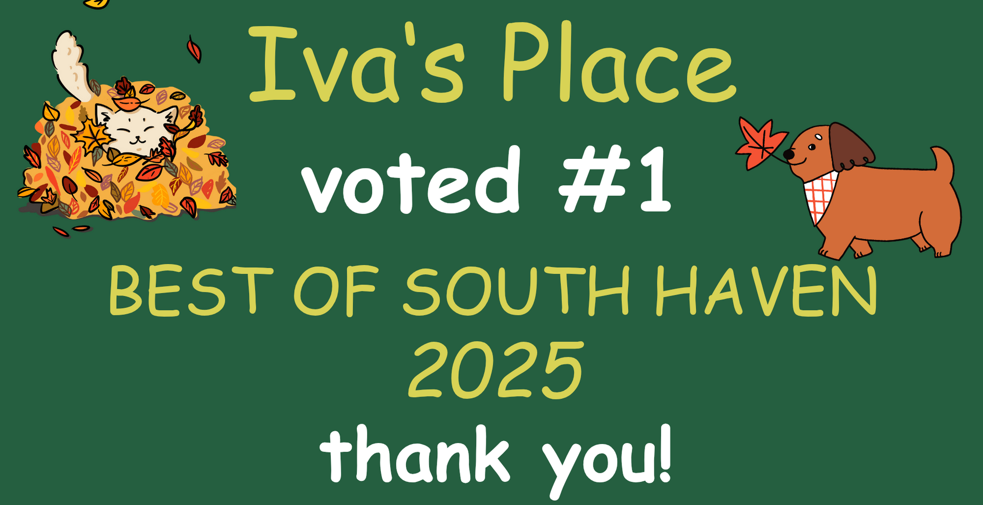 Speaking of photos...fun stuff coming up! Iva’s Place is excited to be a part of The South Haven Tribune & Herald Palladium’s pet photo contest, “Most Pawpular Smile”. There will be prizes from Iva’s Place, Decadent Dogs, and Fluff ‘N Suds. You'll be able to enter your photos for the running here from March 27 through April 2, voting begins April 3, and the winners will be chosen April 10. We hope you're able to participate!